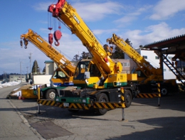 当社では移動式クレーンを使用した各種工事(とび、建方、重量物移動、解体等)を行っております。