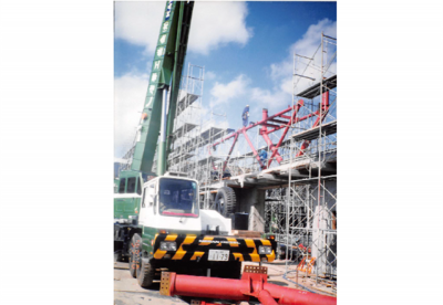 大型移動式クレーン使用。 |