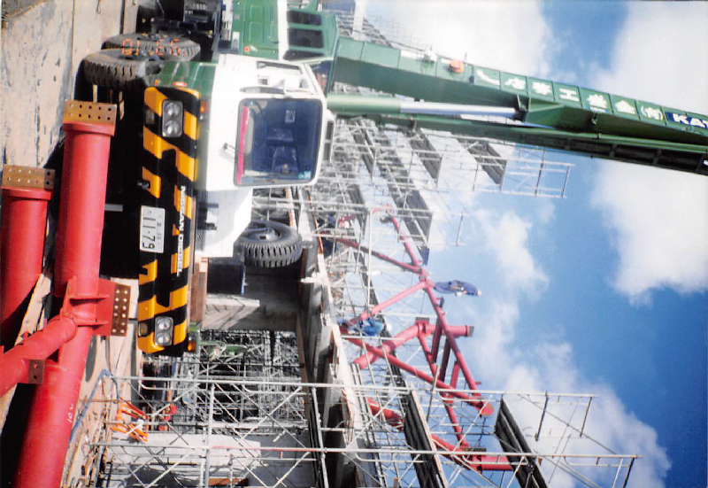 重量級大型クレーンを使用。 |